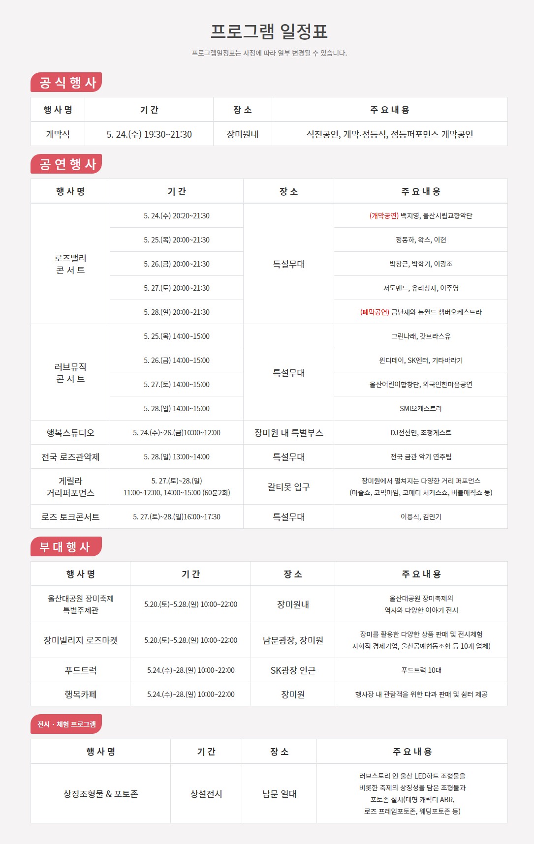 울산대공원 장미축제 프로그램 일정표